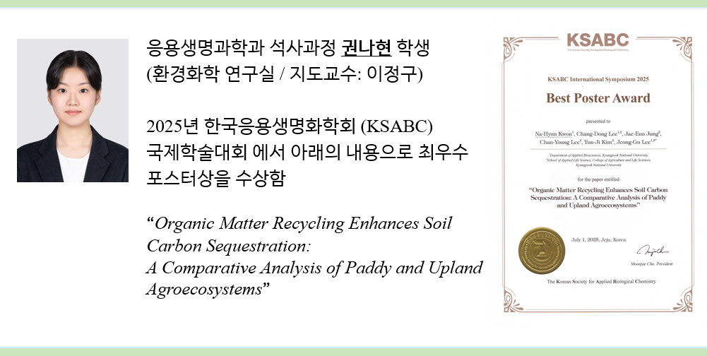 2024.11 권나현학생 KSABC(한국응용생명화학회) 우수논문발표상 수상을 축하합니다